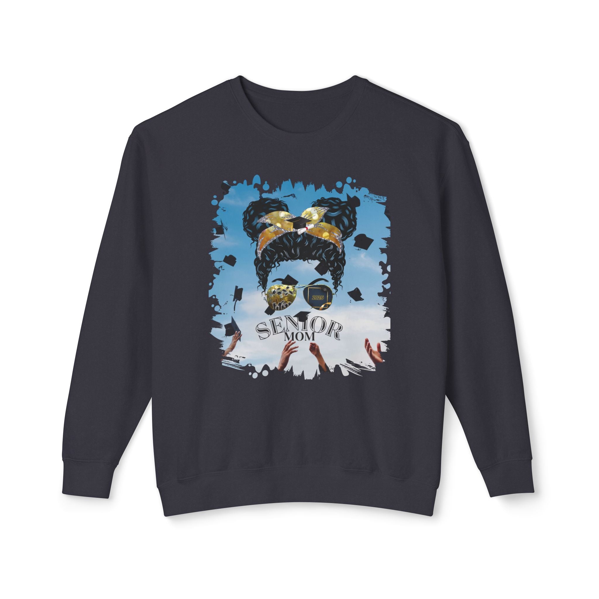 Senior Mom, Celebration, Black Hair Messy Bun, Unisex Lightweight Crewneck Sweatshirt