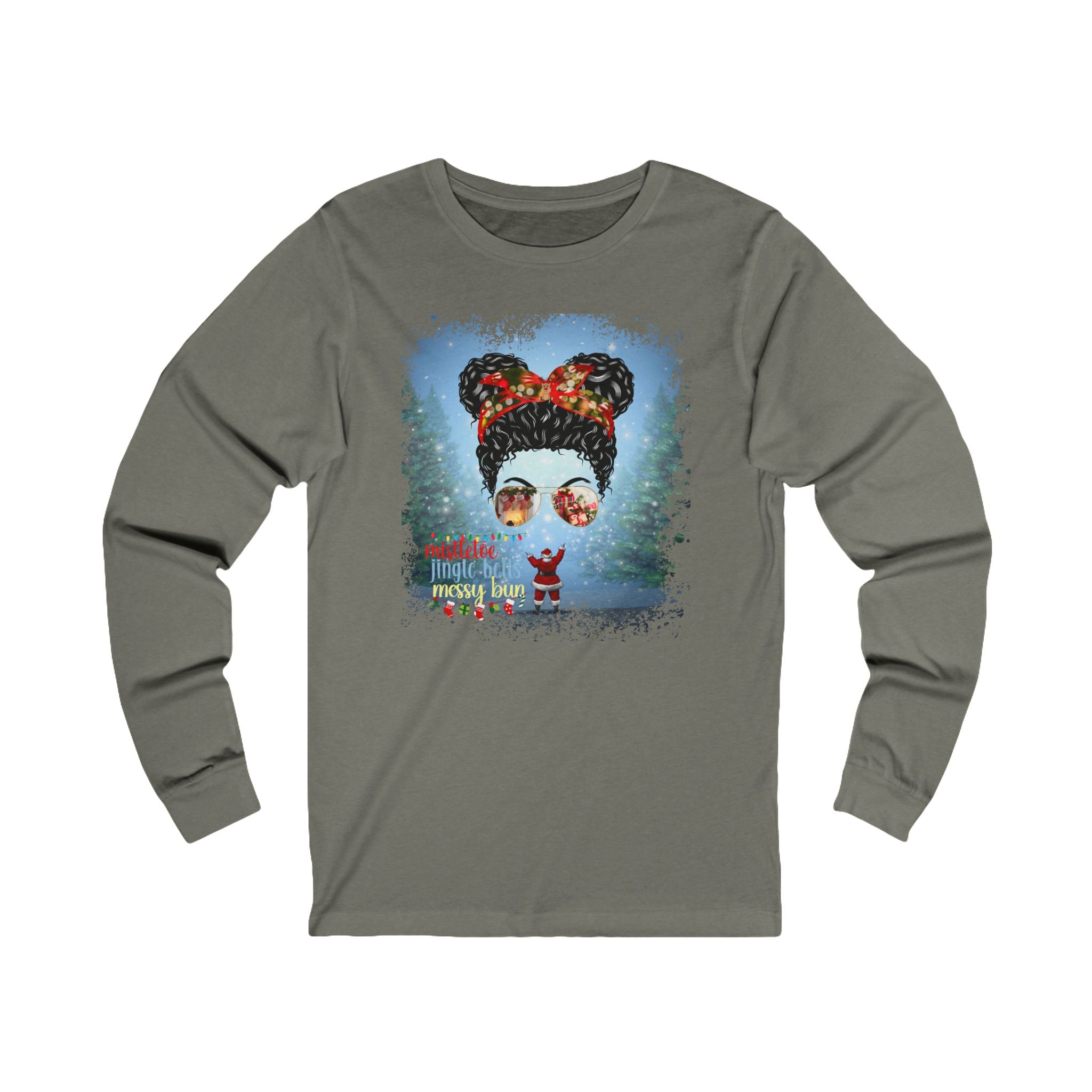 Messy Bun Santa, Black Hair Messy Bun, Unisex Jersey Long Sleeve Tee